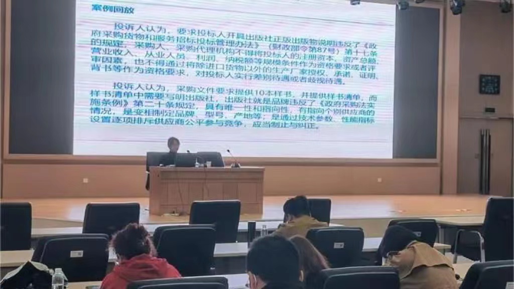 本次培訓(xùn)由我公司招標(biāo)部總監(jiān)康敏茹作為主講人。培訓(xùn)主要從:采購(gòu)人系統(tǒng)操作全流程、合同備案、質(zhì)疑和投訴易發(fā)生原因及處理、投標(biāo)中易串標(biāo)廢標(biāo)點(diǎn)等四個(gè)方面進(jìn)行了深入細(xì)致的講解,對(duì)大家遇到的難點(diǎn)問題進(jìn)行了現(xiàn)場(chǎng)答疑。