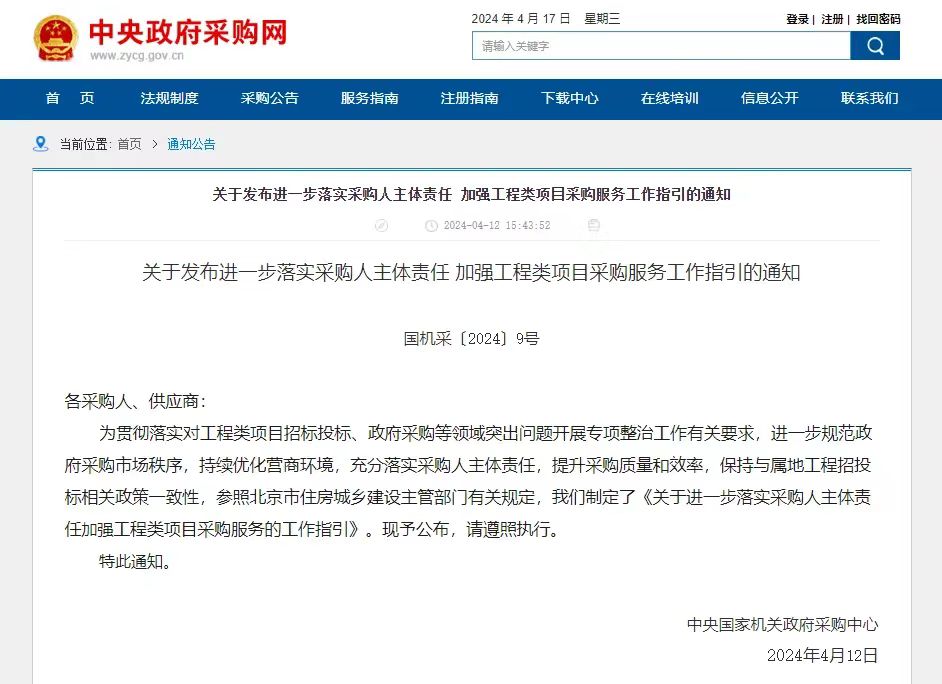 日前,中央國(guó)家機(jī)關(guān)政府采購(gòu)中心印發(fā)《關(guān)于發(fā)布進(jìn)一步落實(shí)采購(gòu)人主體責(zé)任 加強(qiáng)工程類(lèi)項(xiàng)目采購(gòu)服務(wù)工作指引》(以下簡(jiǎn)稱(chēng)《指引》),圍繞項(xiàng)目委托階段、文件編制階段、項(xiàng)目評(píng)審階段、采購(gòu)結(jié)果確認(rèn)階段、采購(gòu)結(jié)果公示階段工作,指引采購(gòu)人進(jìn)一步落實(shí)主體責(zé)任。